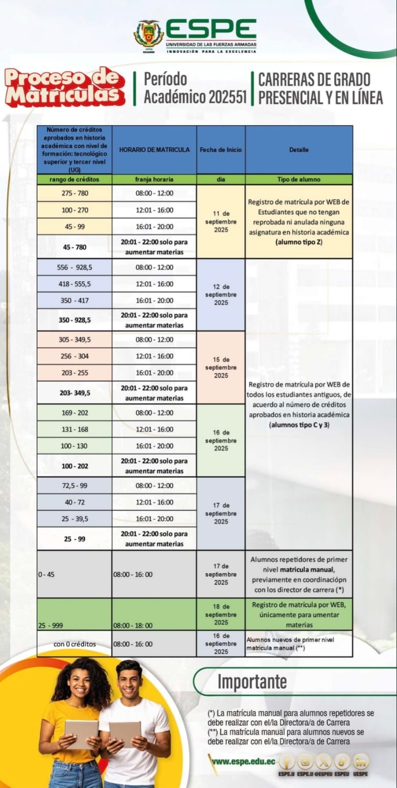 PLANIFICACIÓN DEL REGISTRO DE MATRÍCULAS DE CARRERAS DE LICENCIATURA, INGENIERÍA Y TECNOLOGÍA(MODALIDAD PRESENCIAL, DISTANCIA, EN LÍNEA) SII 2025